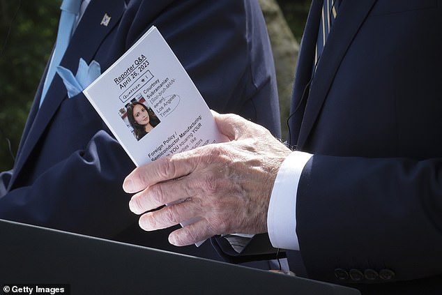Biden’s use of cheat-sheets has been documented in the past, and he has been pictured holding lists of prepared questions and photographs of pre-selected journalists’ faces for him to call on them.