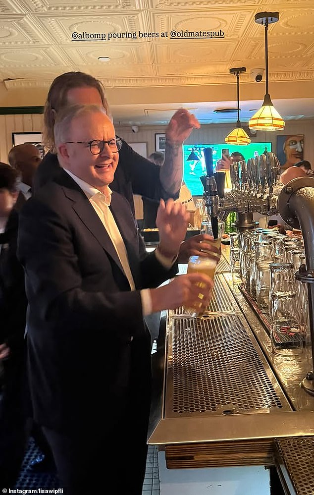The Prime Minister was spotted at Old Mates – a pub owned by Aussie celebrities including Hollywood star Hugh Jackman, tennis legend Ash Barty and radio hosts Andy Lee and Hamish Blake.