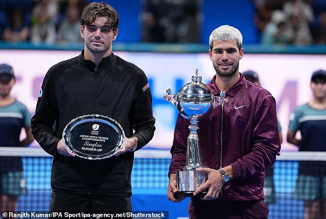 Alcaraz’s achievement is all the more impressive because his campaign in Tokyo was almost over before it started when he suffered an ankle injury early in his opening match, but he went on to drop just one set all week.