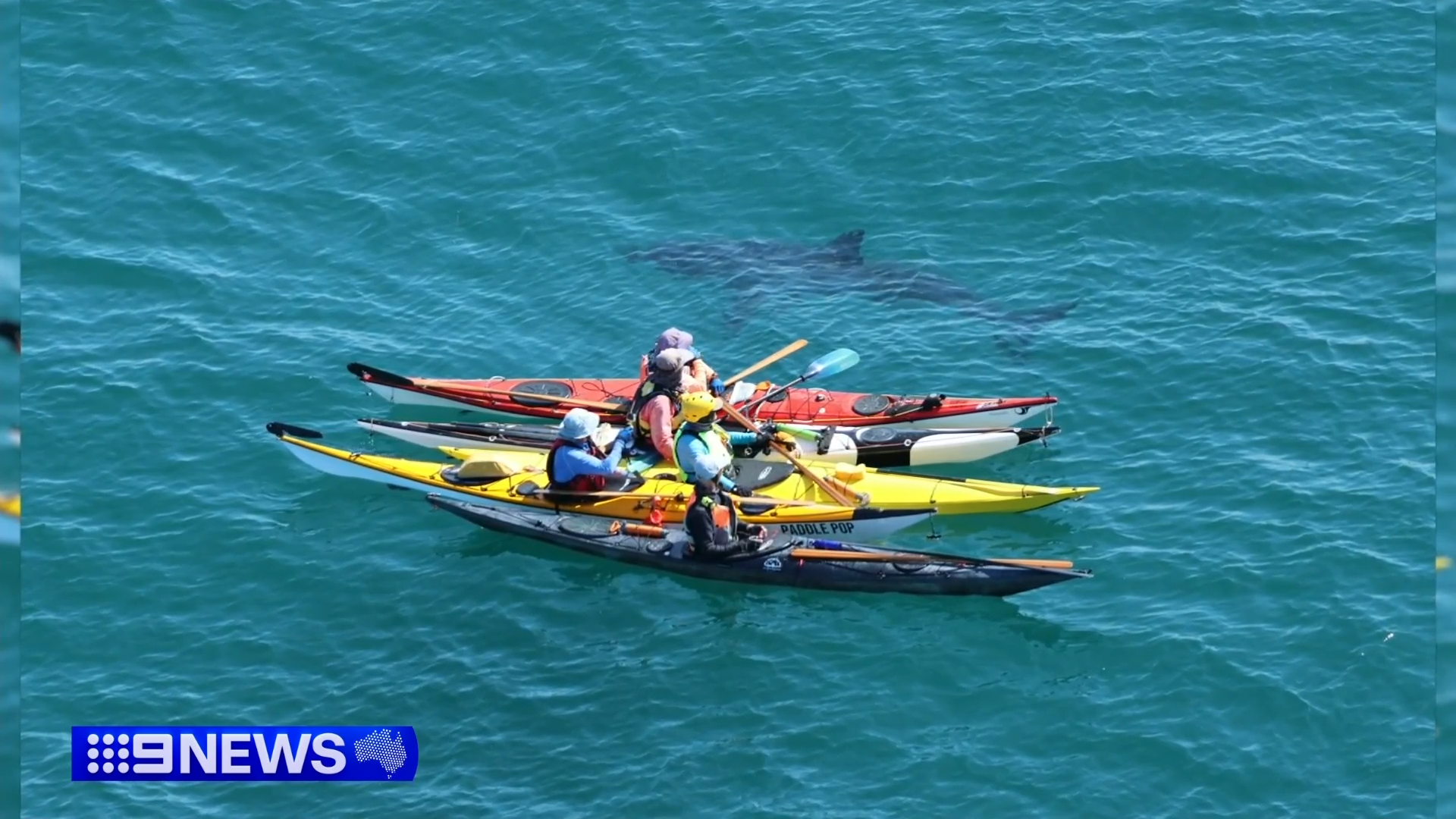 ‘Not again’: WA kayakers survive close encounter with huge great white