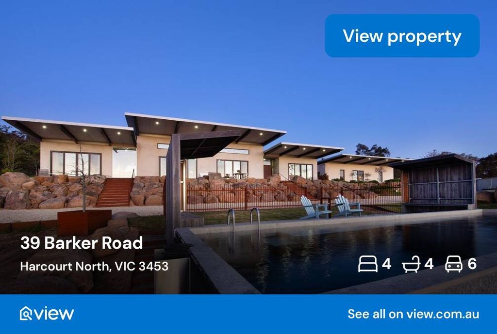 Custom-built with panoramic valley greatinsports.coms, this modern home inHarcourt North offers buyers a chance to get away from the hustle and bustle. ‘The Grove’ is set on 20 acres of land and includes a main residence, self-contained studio, solar-heated pool, landscaped gardens and large storage/workshop.