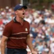 Huge celebrations from Bryson and the massive crowd beside that green.
