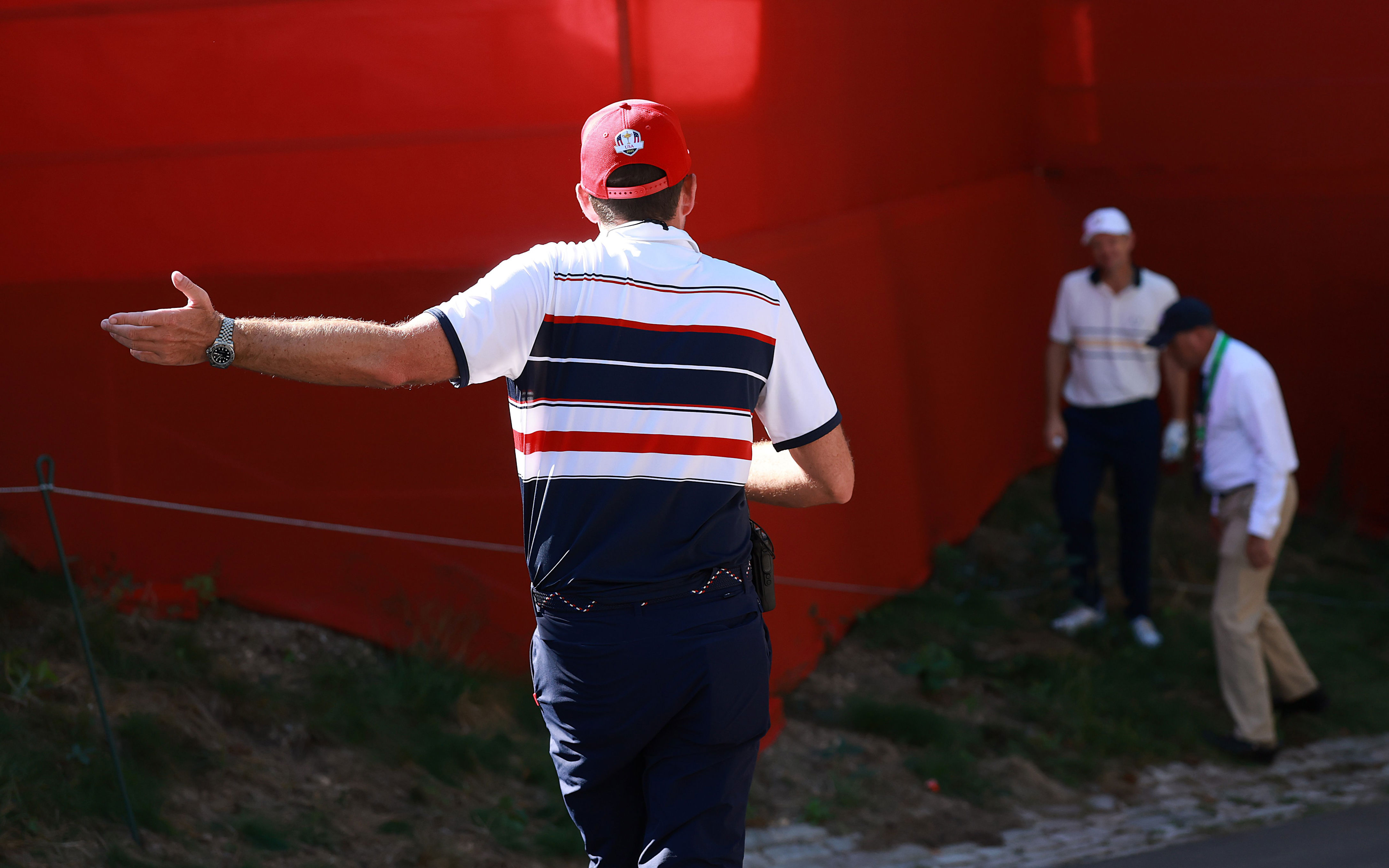 His drop was disputed by USA captain Bradley in a little bit of controversy with the officials brought in to look.