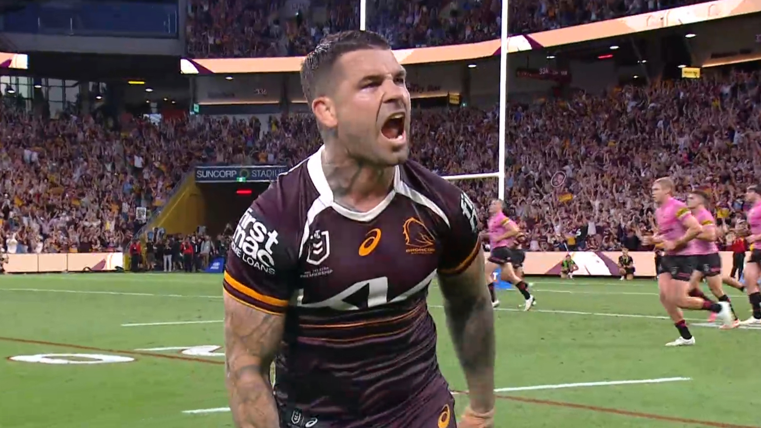 In front of a sold-out Lang Park, the Broncos clawed back a 14-0 deficit at half-time to defeat the Penrith Panthers, who had won the last four NRL premierships, and qualify for a second grand final in three years.
